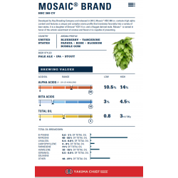 Le houblon Mosaic®, crée en 2012, est un houblon au goût de papaye, mandarine et myrtille.