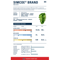 Simcoe® hops, from Yakima Chief Hops, are a dual hop with lemon and passion fruit aromas. Ideal for IPAs